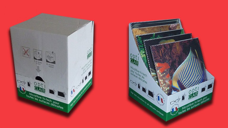 Montage mennuel cale inférieure et supérieure attenantes. Fermeturte latérale par encliquetage, dessus et dessouspattes rentrantes. L'astuce? Le sens de montage des cales différent pour maintenir parfaitement chaque produit.